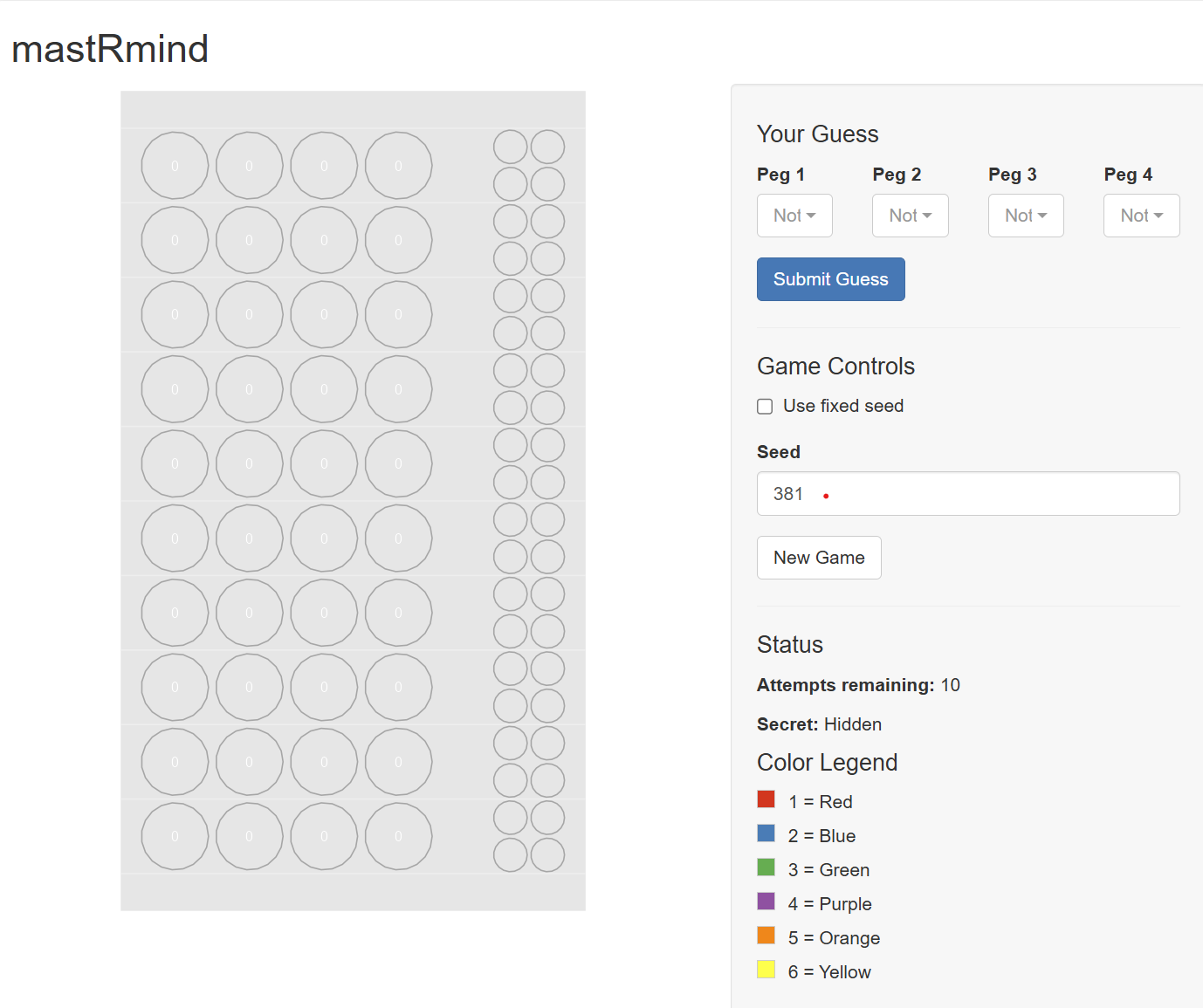 An R implementation of the Mastermind peg game.