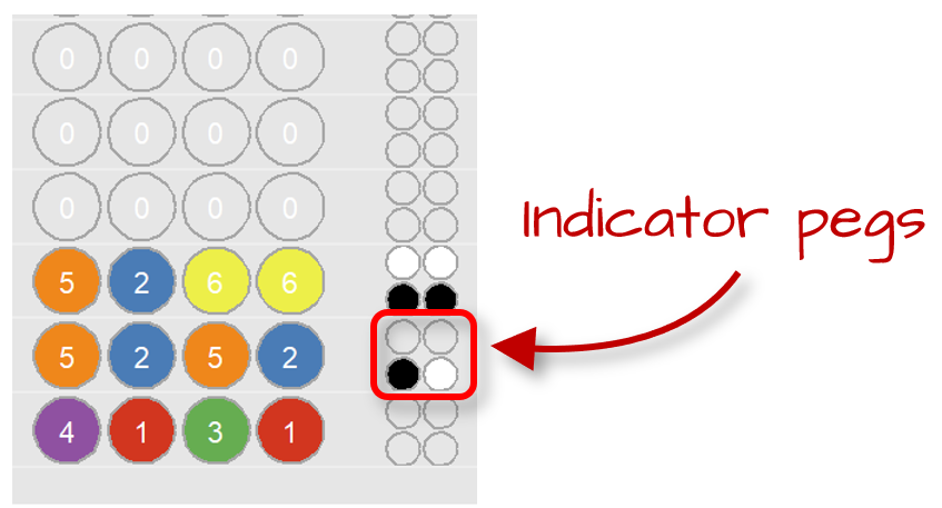 - After each guess, the codemaker provides feedback using small indicator pegs:
