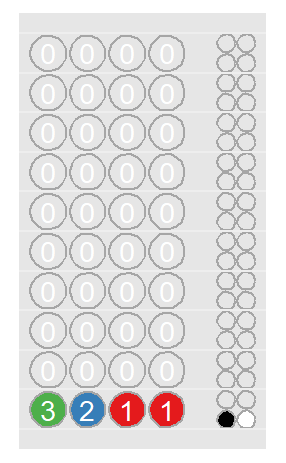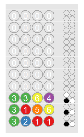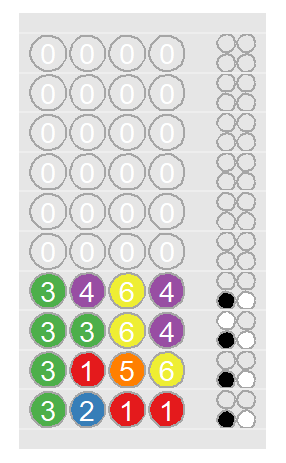 - The player (the codebreaker) makes a guess by placing 4 pegs in a row.