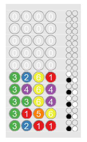 - The feedback pegs are not provided in positional order, so the player knows how many pegs are correct but not which ones.
